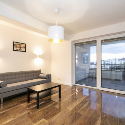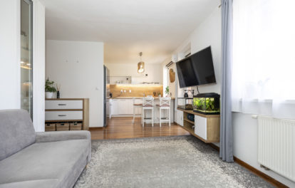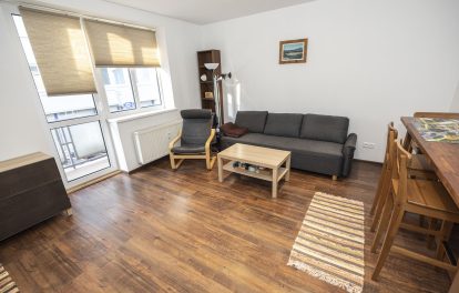 Byt pozostáva zo vstupnej predsiene odkiaľ je prístup do samostatnej izby, kúpeľne a toalety, kuchyňa je spojená s obývačkou z ktorej sa vychádza na terasu. Z prechodu medzi obývačkou a kuchyňou je vstup do spálne a tiež východ na terasu.