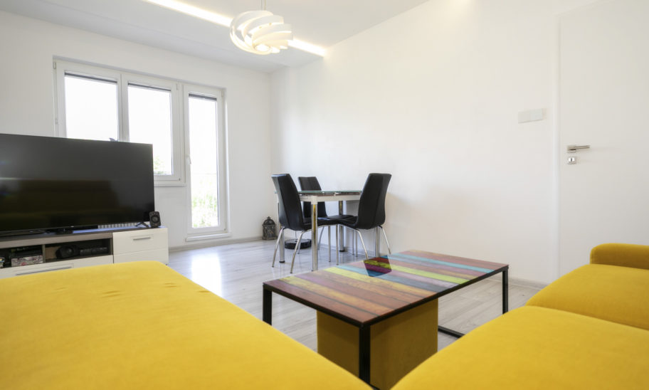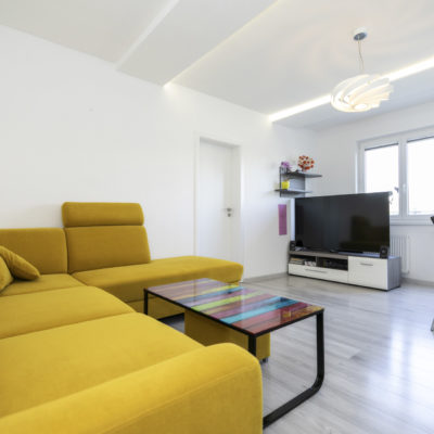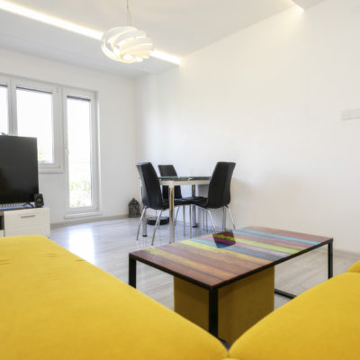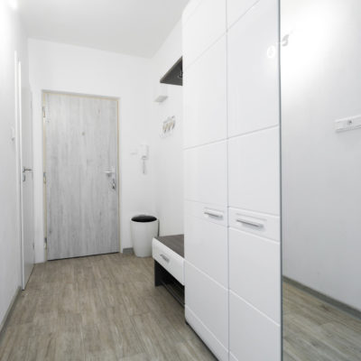 Byt pozostáva z chodby, kuchyne, obývacej izby (balkón), spálne, kúpeľne a samostatného WC. Úplne všetko bolo kvalitne zrekonštruované v roku 2017.