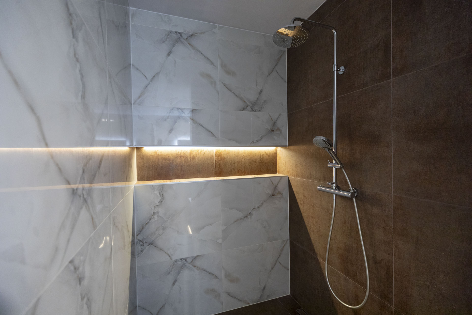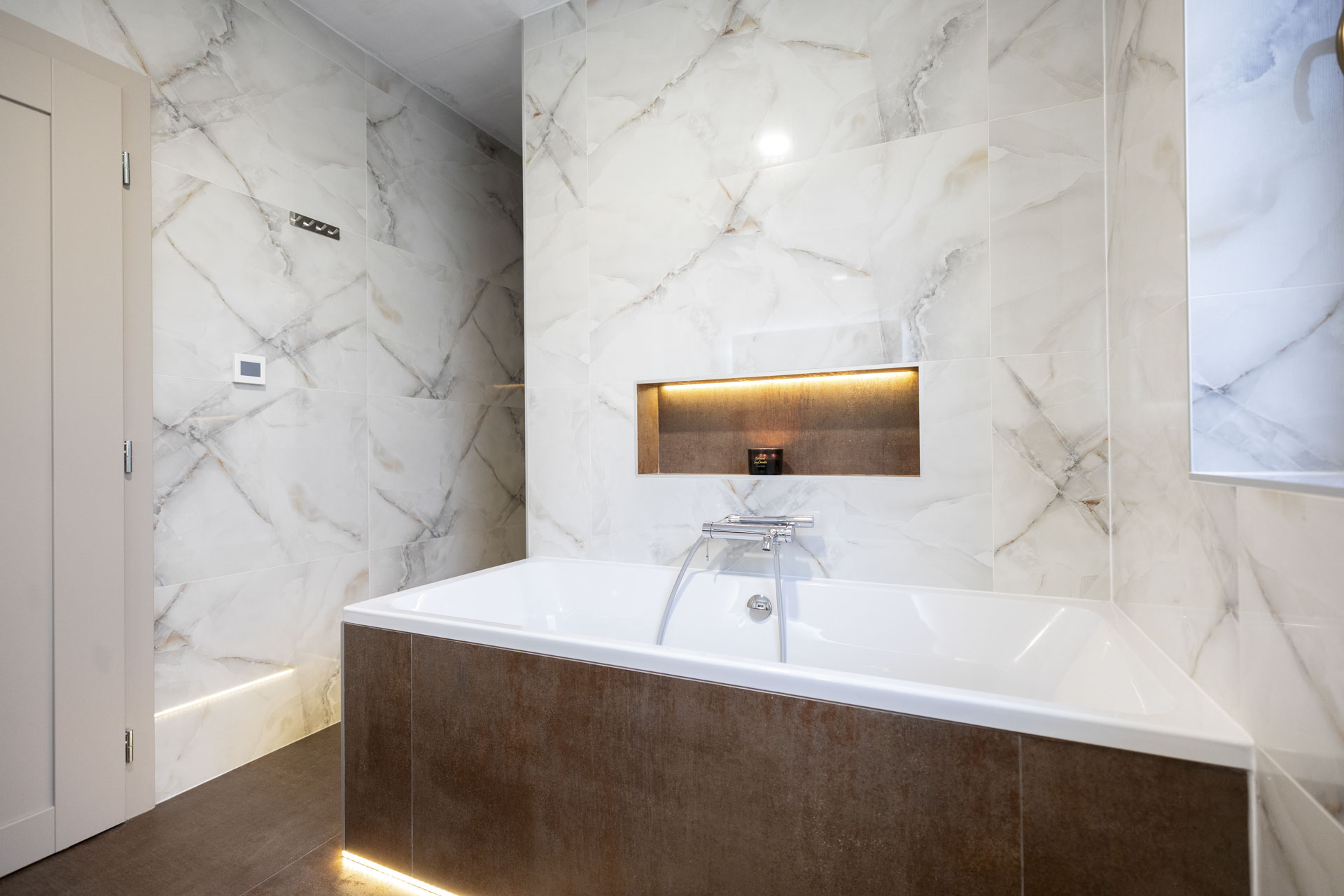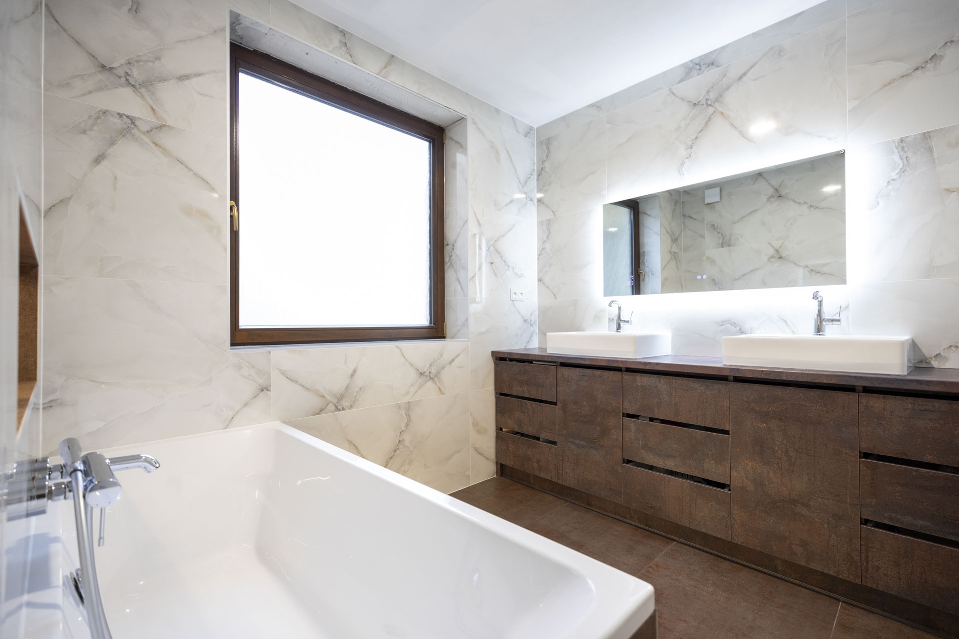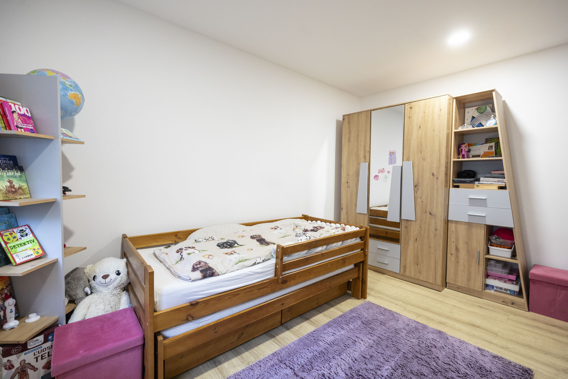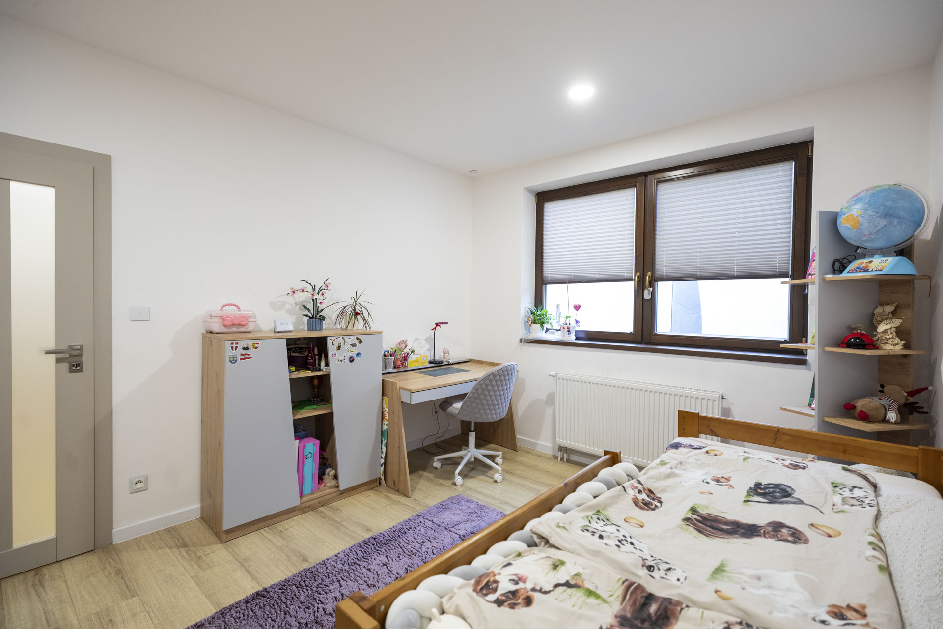 • Nočná časť (90m2): 4 izby (Spálňa, Detská Izba, Hosťovská izba, Pracovňa) s dostatkom úložného priestoru a dizajnová kúpeľňa (časť s vaňou a druha časť so sprchovým kutom) a extra WC