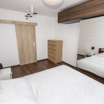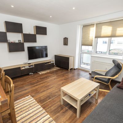 Ponúkam na prenájom 2-izbový kompletne zariadený a vybavený byt s balkónom na 1. poschodí. Nachádza sa v tehlovom bytovom dome bez výťahu, ale na 1. poschodie vedie len 15 schodov. Dispozícia bytu je prakticky riešená a pozostáva zo samostatnej spálne, obývacej izby, kuchyne a kúpeľne spolu s WC. Odkladací priestor je zabezpečený v menšej komore priamo v byte a v priestrannej pivnici.