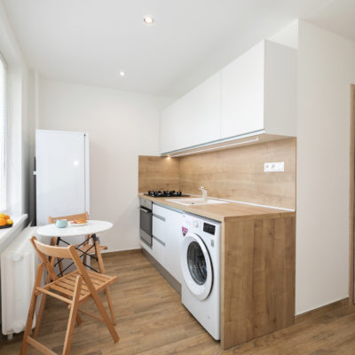 Tento skvelý 1 izbový byt (27m2) prešiel kompletnou rekonštrukciou a ponúkame ho zariadený a vybavený. Byt má perfektnú polohu, bezproblémové parkovanie, výťah ktorý Vás vyvezie na 4.poschodie, pivnicu a dostatok slnka ktoré si vychutnáte na balkóne alebo logii. Nízke mesačné náklady Vás milo prekvapia. Jedinečná príležitosť pre Vás, ktorí hľadáte super investíciu alebo svoje prvé bývanie. Všetko, čo potrebujete k spokojnému životu máte po ruke.